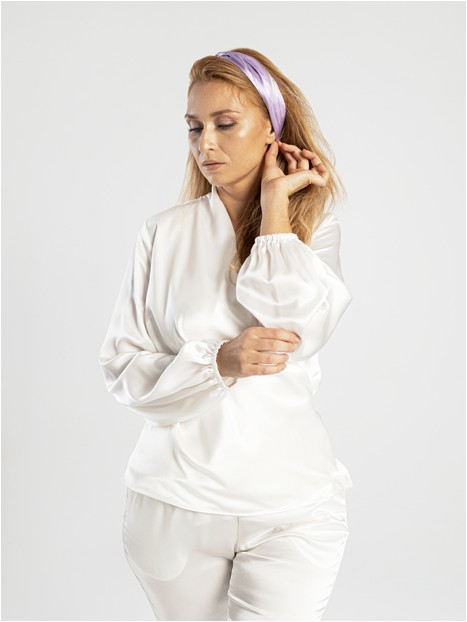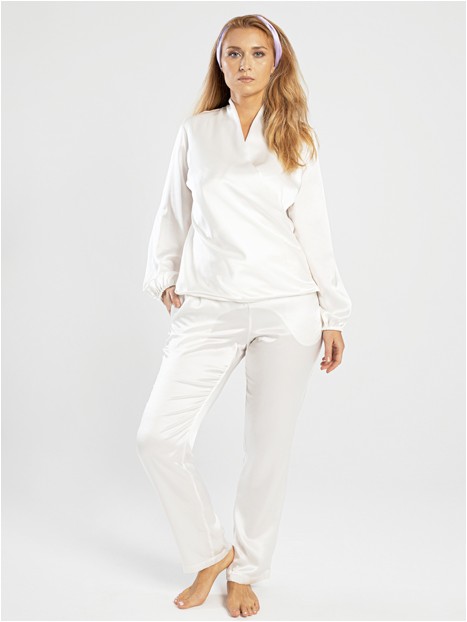 Die elegante Bluse kann zum Rock, Businesshose oder zur Jeans getragen werden. In Kombination mit unserer Seidenhose bildet sie ein schickes Schlafoutfit, das ein perfektes und gesundes Schlafklima für Ihre Haut bietet.