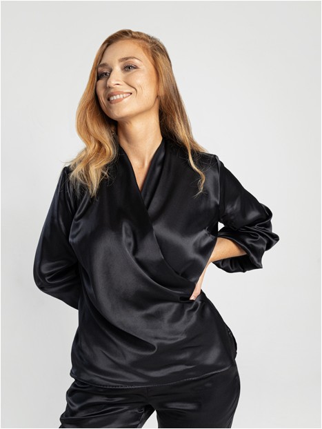 Die elegante Bluse kann zum Rock, Businesshose oder zur Jeans getragen werden. In Kombination mit unserer Seidenhose bildet sie ein schickes Schlafoutfit, das ein perfektes und gesundes Schlafklima für Ihre Haut bietet.