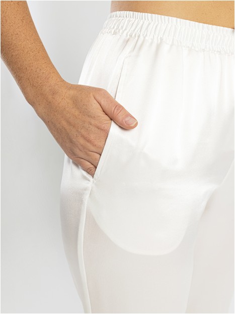 Die luftige und anschmiegsame Seidenhose bietet Komfort sowohl nachts als auch tagsüber. Zusammen mit unserem Seidenshirt oder unserer Seidenbluse bilden sie das perfekte Ensemble zum Schlafen.