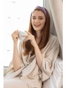 Das Haarband aus 100% Ahimsa-Seide hält das Haar in Form und schmückt gleichzeitig den Kopf. Die glatte Oberfläche der Maulbeerseide verhindert mechanische Beschädigungen durch Reibung.