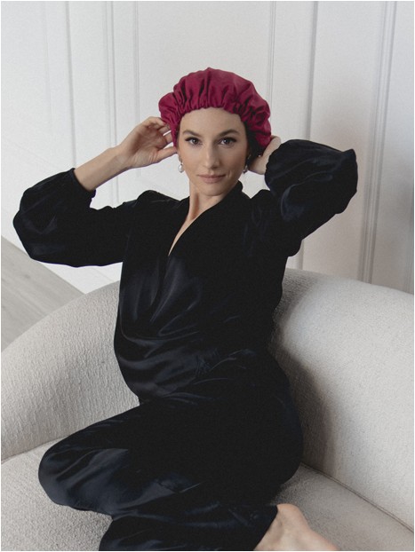 Mit diesem Schlafhaube aus 100% Ahimsa-Seide bleiben Ihre Haare nachts geschmeidig und gut geschützt.