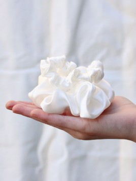 2 silk scrunchies made of 100% cruelty-free peace silk