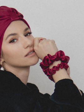 2 silk scrunchies made of 100% cruelty-free peace silk