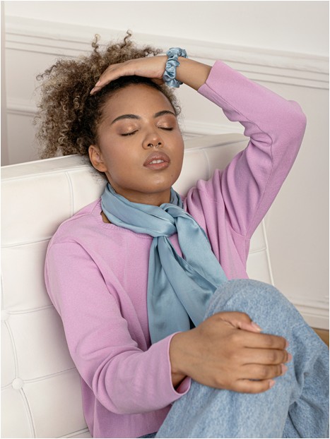 This  delicate scarf made of 100% Peace Silk can be worn as accessoire for you neck, hair or head.